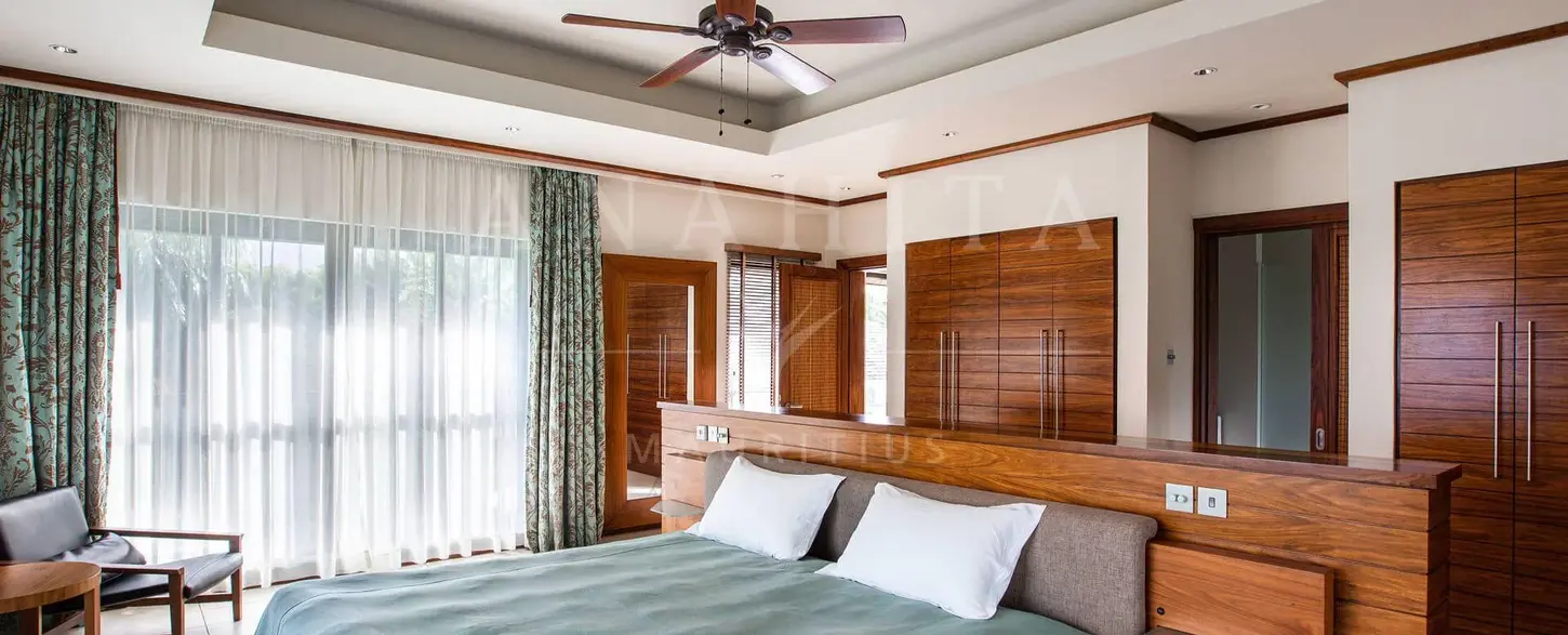 Set on a 1,935 m² plot, this elegant 485 m² villa occupies a prime position alongside the 5th hole of Anahita Golf Resort, offering stunning views over the course and across the lagoon.